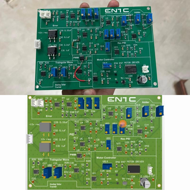 - Designed and tuned an op-amp-based PID controller to regulate panel orientation